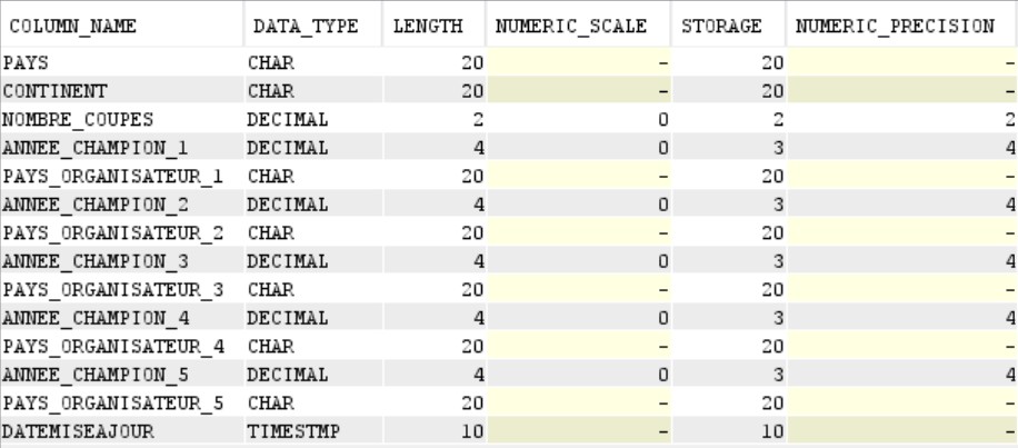 SELECT COLUMN_NAME, DATA_TYPE, LENGTH, NUMERIC_SCALE, STORAGE, NUMERIC_PRECISION