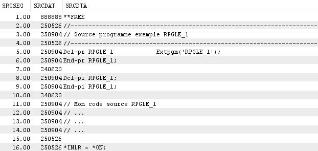 Retourne le contenu du premier membre source RPGLE_1.