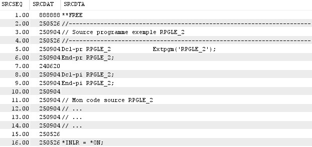 Retourne le contenu du membre source RPGLE_2.