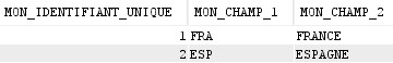 La table MA_TABLE_SQL (MA_TABLE) contiendra le champ MON_IDENTIFIANT_UNIQUE (MON_ID).
